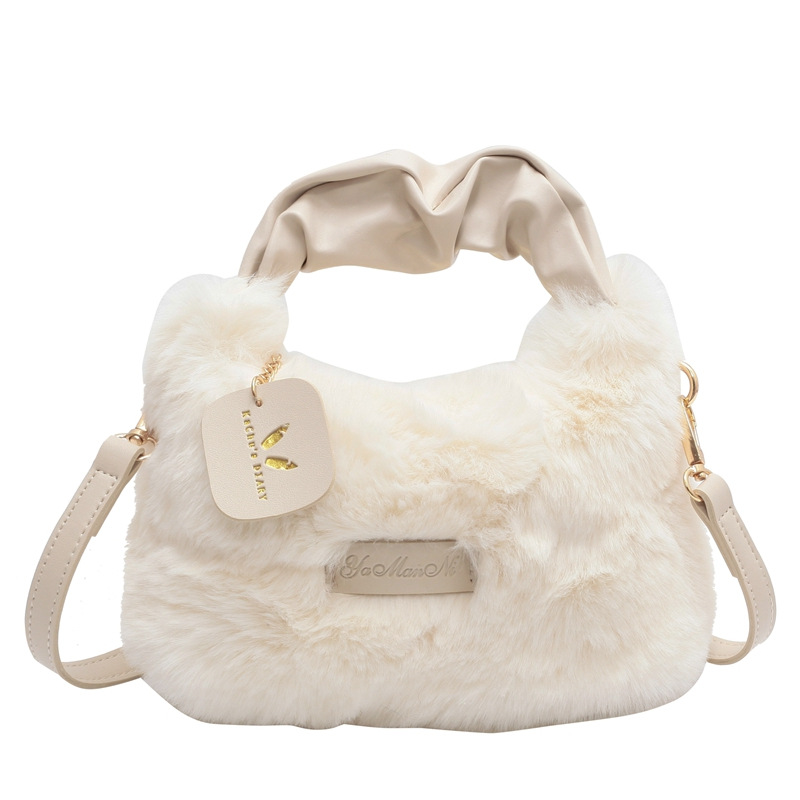 12分鐘前手提包褶皺毛絨包 - 卡其色