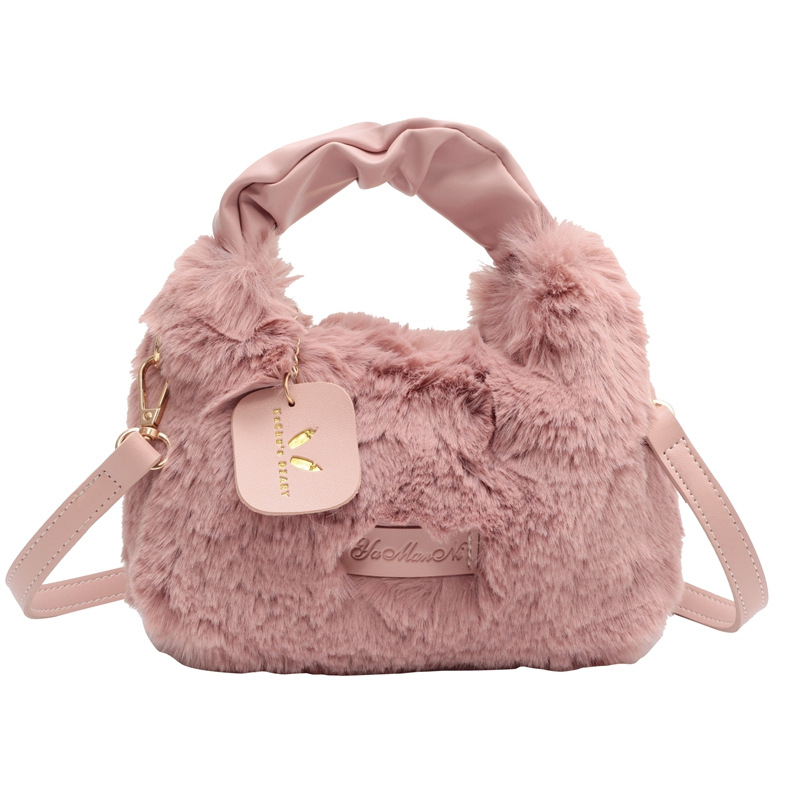 2分鐘前手提包褶皺毛絨包 - 粉色