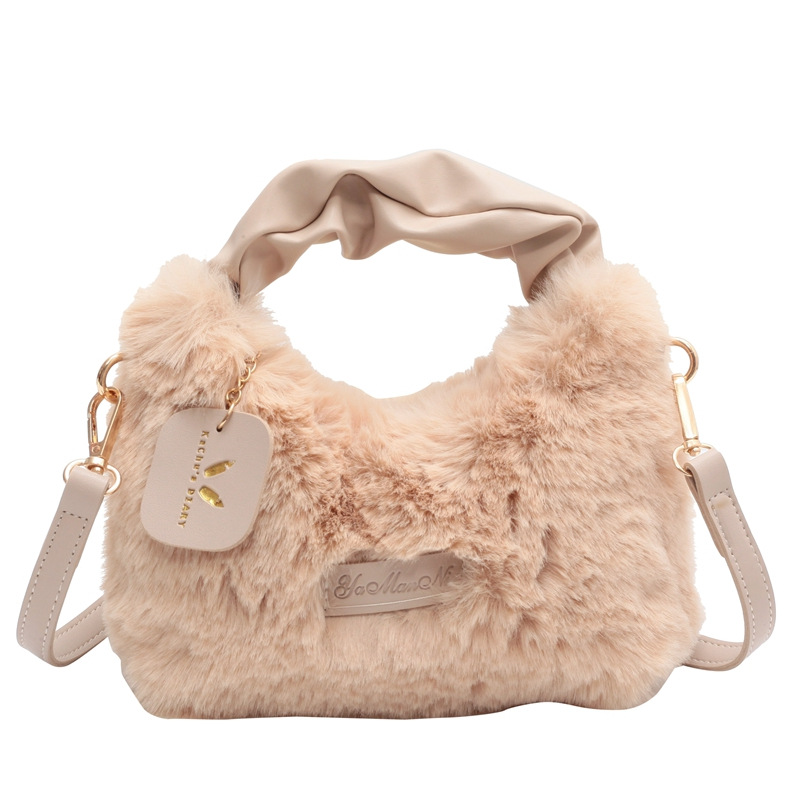 25分鐘前手提包褶皺毛絨包 - 卡其色