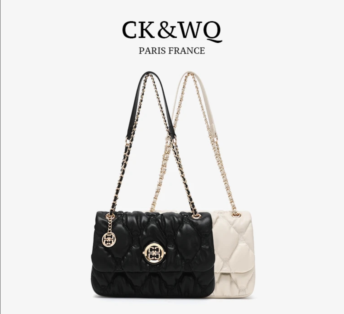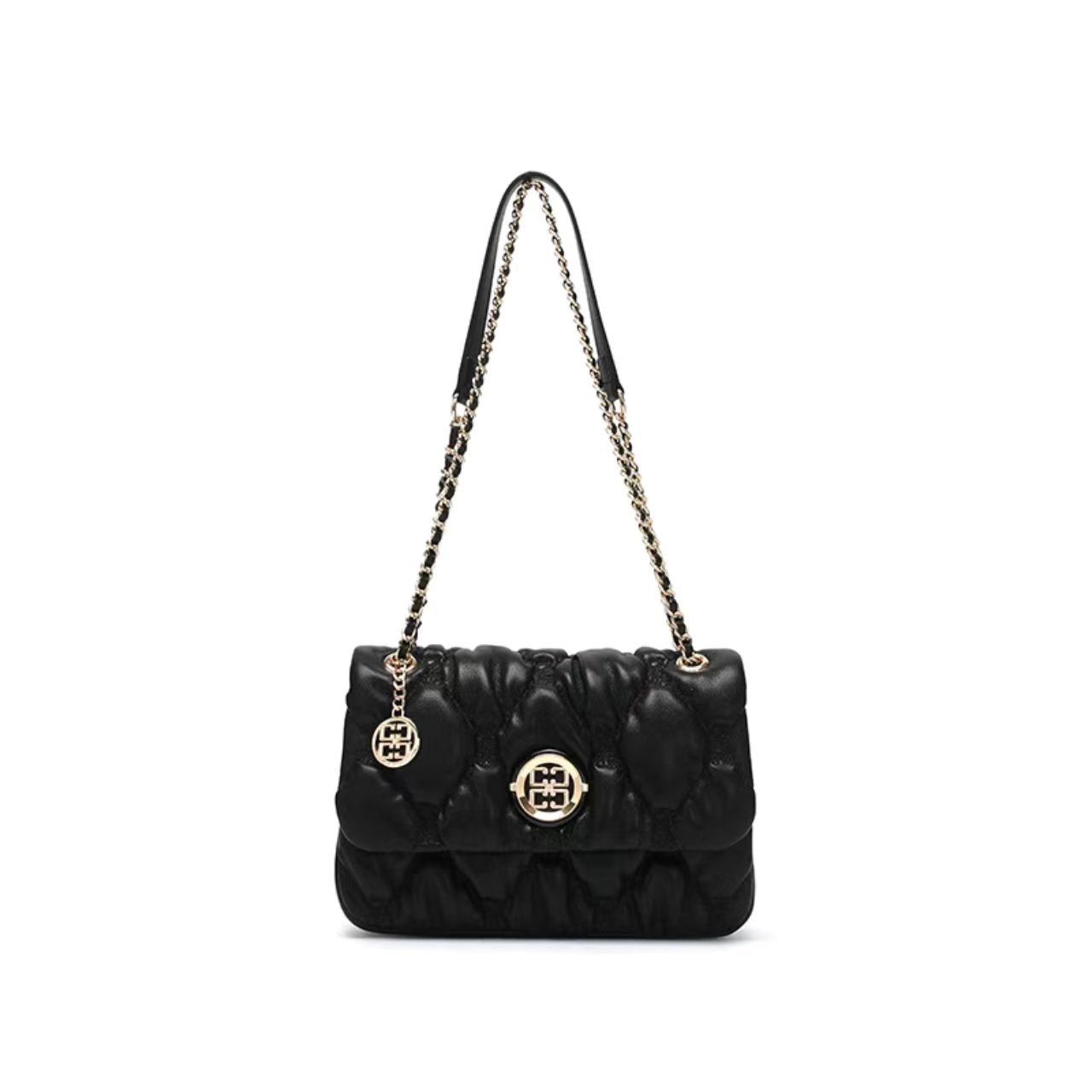 2分鐘前優雅菱格繡線單肩斜挎包 - 黑色