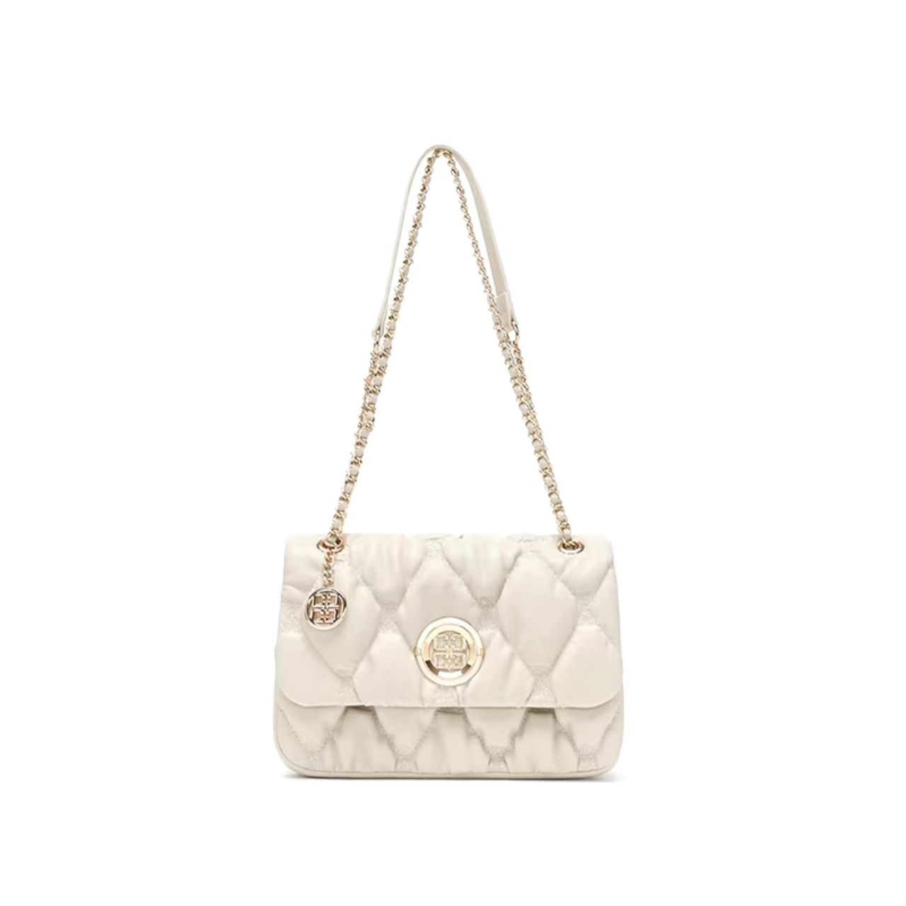 12分鐘前優雅菱格繡線單肩斜挎包 - 米白色