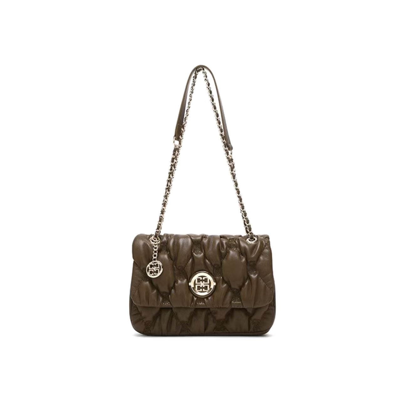 4分鐘前優雅菱格繡線單肩斜挎包 - 棕色