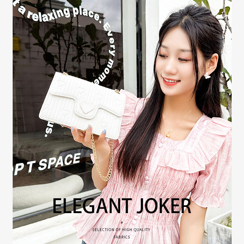 7分鐘前愛心繡線單肩小方包 - 黑色