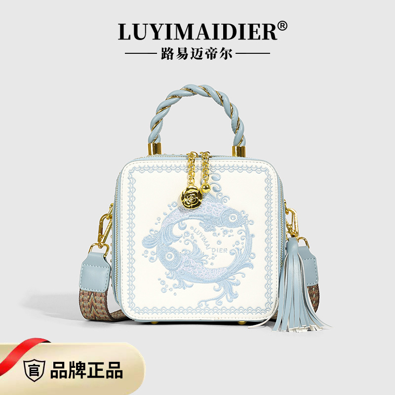 7分鐘前刺繡香水包 - 天藍米白色