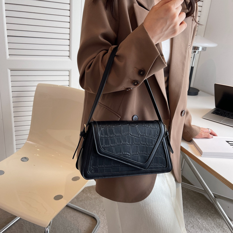 4分鐘前時尚鱷魚紋腋下斜挎包 - 黑色