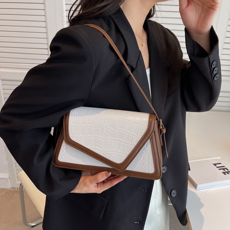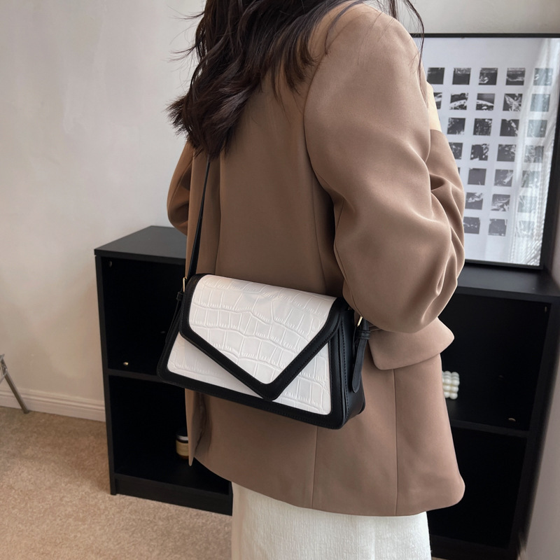 4分鐘前時尚鱷魚紋腋下斜挎包 - 白配黑