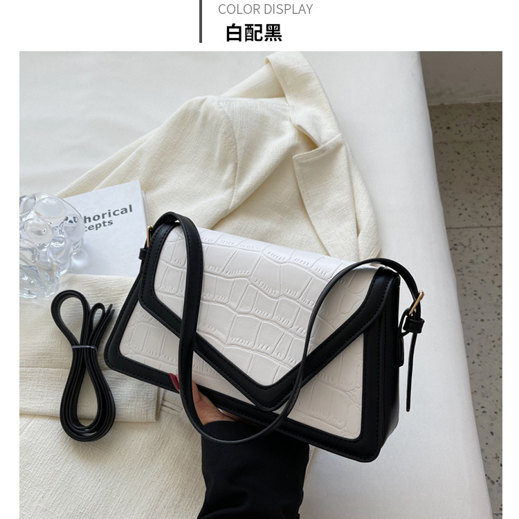 5分鐘前時尚鱷魚紋腋下斜挎包 - 白配黑