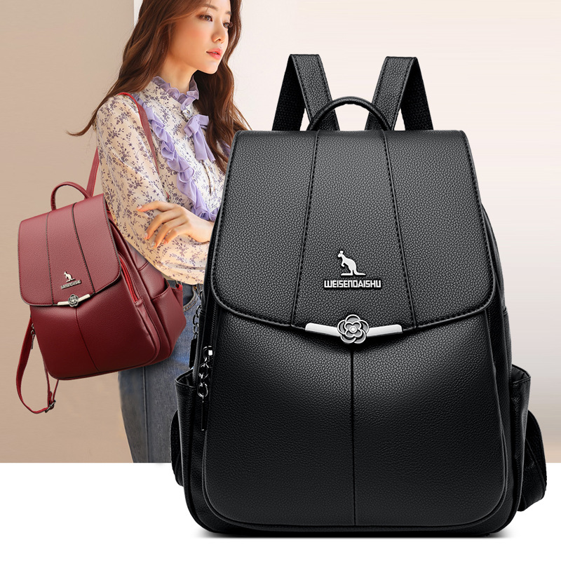 7分鐘前簡約百搭袋鼠軟皮背包 - 酒紅色