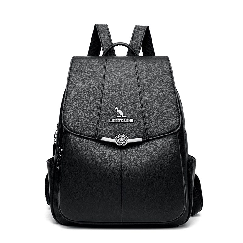 4分鐘前簡約百搭袋鼠軟皮背包 - 黑色